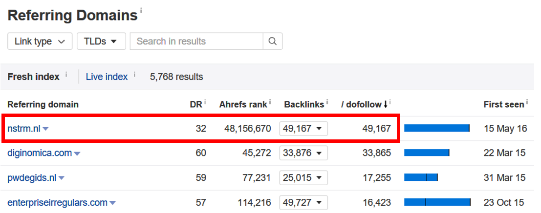 Workday’s top referring domain, nstrm.nl, is a low-quality broken site: